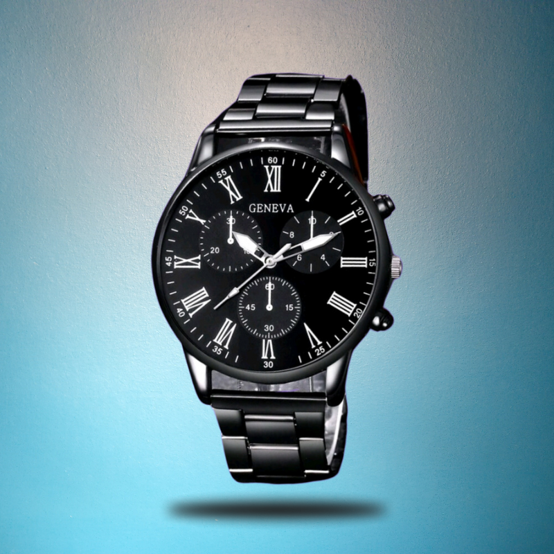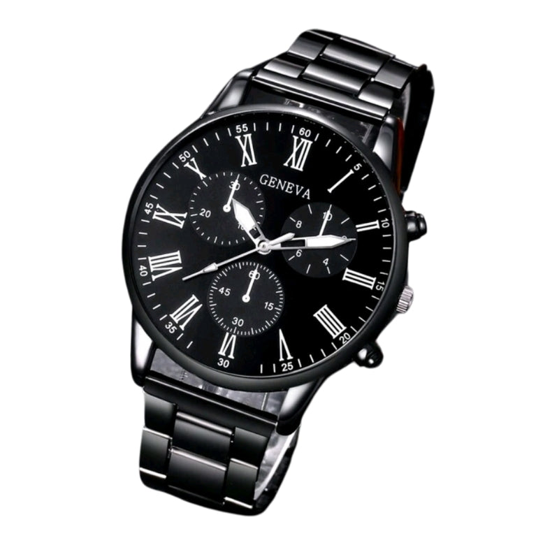 ساعة رجالية استثنائية باللون الأسود العميق، تتميز بحزام حديدي متين يمنحك شعوراً بالقوة والثقة. صُممت لتناسب إطلالاتك الرسمية واليومية بلمسة عصرية لا تختفي بمرور الزمن