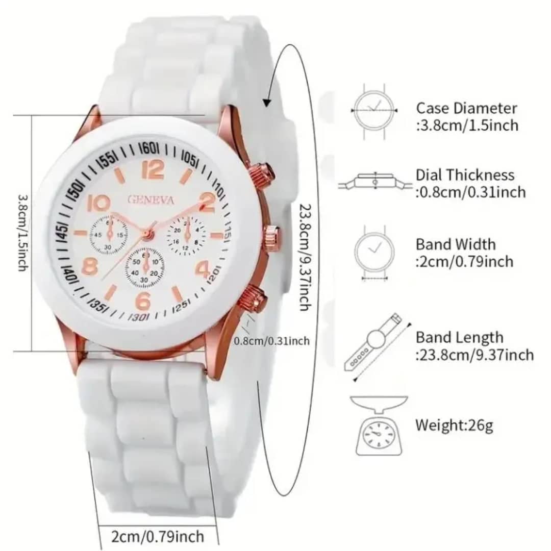 هدية مجانية: 2 أساور (Black & White) بنفس ألوان الساعات لتكمل جمال الطقم.